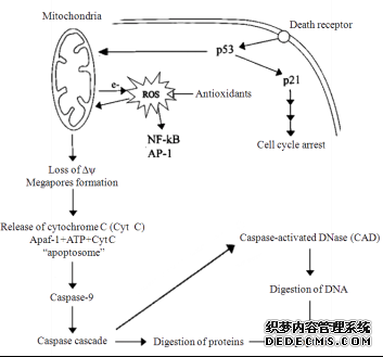 Fig.2   Schematic representation of apoptosis which is mediated by ROS generated by mitochondria(modified from reference [50])